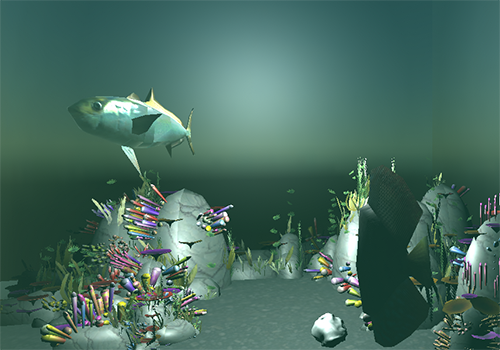大きな水槽は、上から差し込む光の様子もリアル。さまざまな角度から観察すると、その都度新たな発見があるかもしれません。