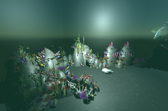 水槽のなかに置かれた岩には、カラフルな「何か」が。水草なのか 、貝なのか、はたまた違う何かなのか…実際に見て確かめましょう。