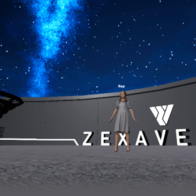 ZEXAVERSE内では時間の経過で景色が変わります。日の入り前の桜はまた違った情緒ある景色を見せてくれます。