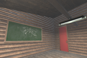 舞台はレトロな教室。黒板や本棚がある部屋のなかに流れるのは、クリスマスを連想させるBGMです。サンタクロースが教室にいるという、不思議な感覚を楽しめるメタバースに仕上がっています。