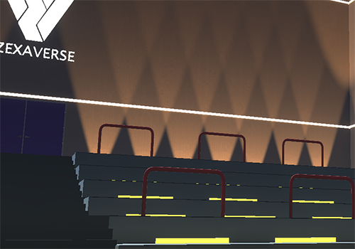 劇場の入り口上部には、「ZEXAVERSE」の大きなロゴが。光り輝く印象的なロゴも、ぜひ間近に歩み寄って見てみましょう。